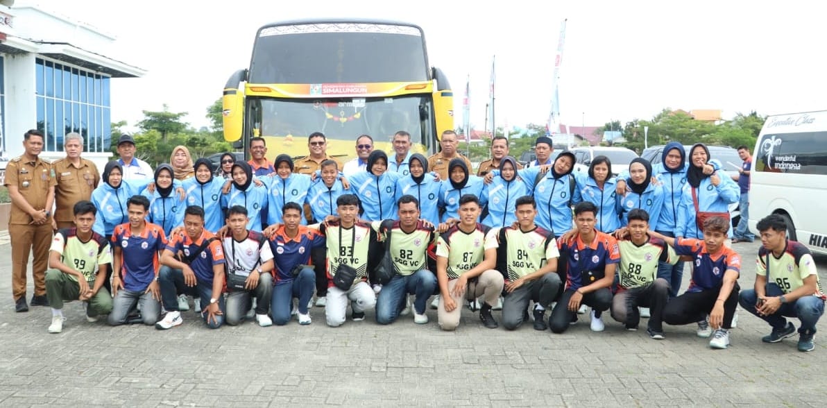Pemerintah Kabupaten Simalungun secara resmi melepas kontingen atlet bola voli putra dan putri yang akan berlaga di Kejuaraan Provinsi (Kejurprov) Sumatera Utara Tahun 2025, di halaman Kantor Bupati Simalungun, Pamatang Raya, Sumatera Utara, Senin, 22/09/2025